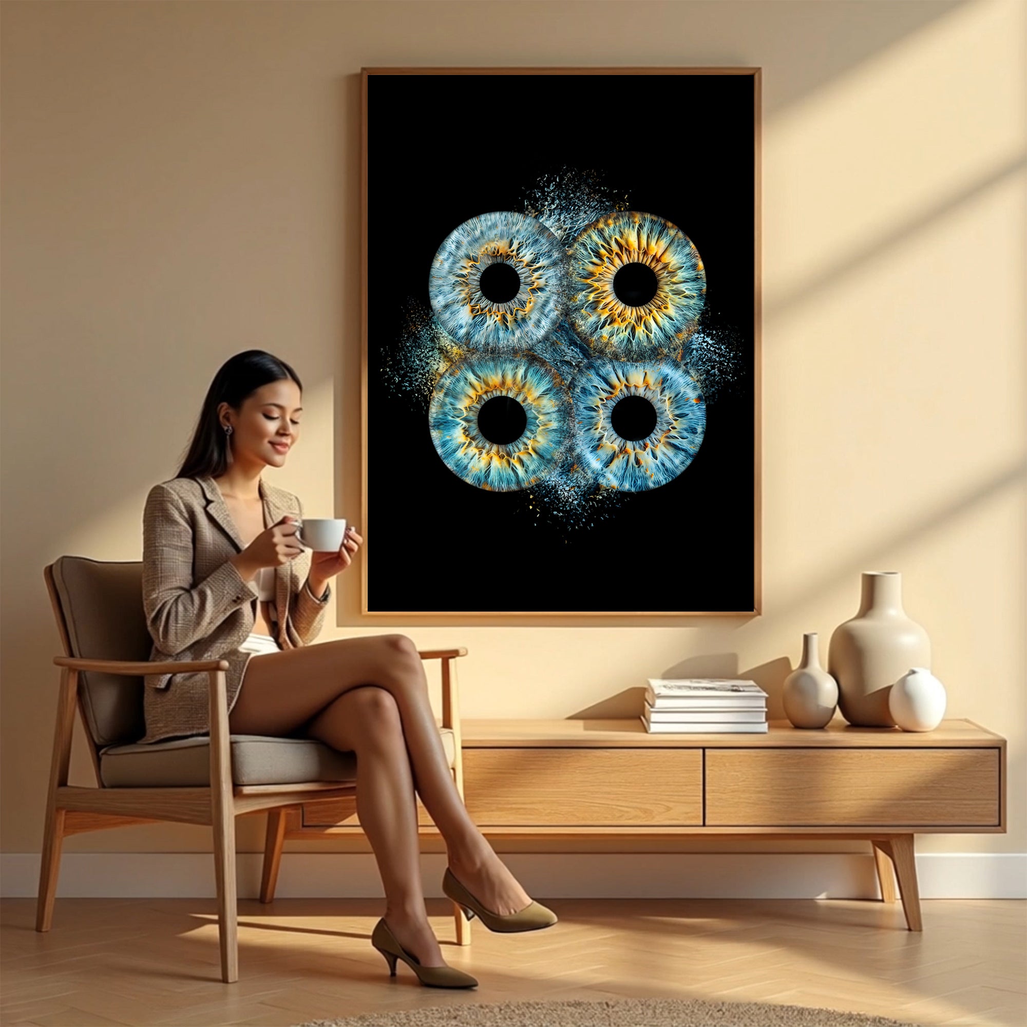 A generational masterpiece. Capture the unique iris patterns of every family member and bring them together in one sophisticated gallery piece that celebrates your shared legacy.